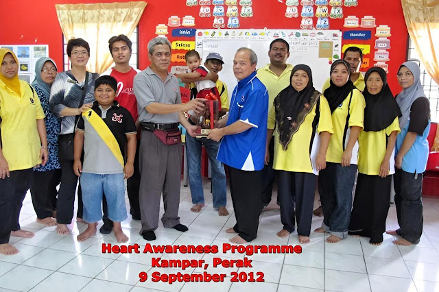 The Heart Disease Awareness Campaign on 9 September 2012 was conducted at Dewan Tabika Perpaduan, Taman Ros, Kampar, Perak. One of the staff of the Malaysian Heart Foundation comes from this area.